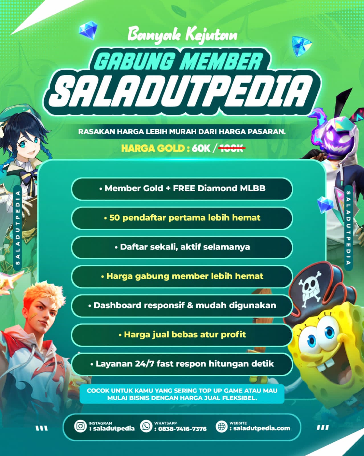 - Harga Termurah: Saladutpedia selalu berkomitmen menghadirkan harga terbaik untuk setiap layanan top up dan voucher. Gamer tidak perlu khawatir akan biaya mahal, karena di sini setiap transaksi bisa dilakukan dengan harga yang ramah di kantong.